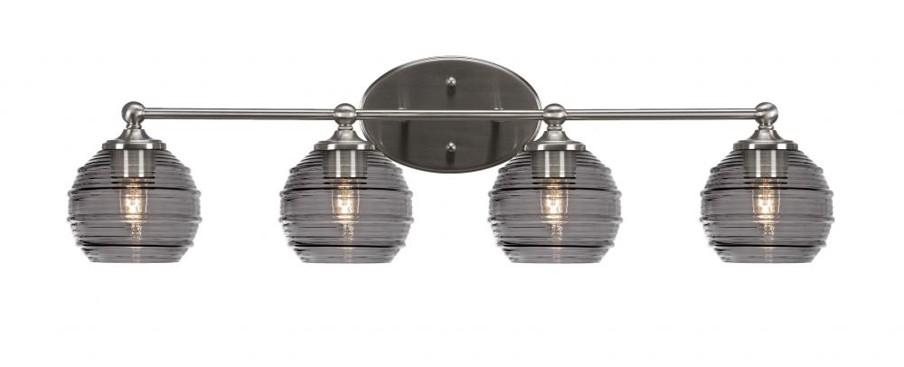 Capri 4 Light Bath Bar Shown In Brushed Nickel Finish With 6 Smoke Ribbed Glass