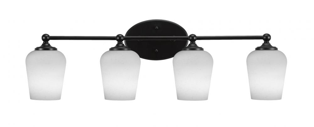 Capri 4 Light Bath Bar Shown In Matte Black Finish With 5 White Muslin Glass