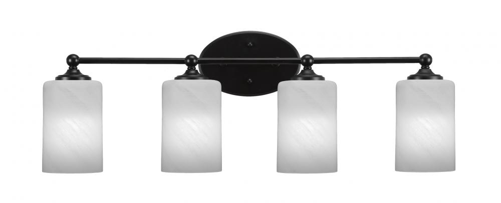 Capri 4 Light Bath Bar Shown In Matte Black Finish With 4 White Marble Glass