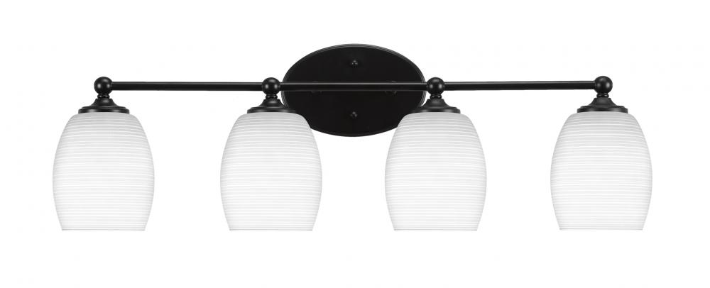 Capri 4 Light Bath Bar Shown In Matte Black Finish With 5 White Matrix Glass
