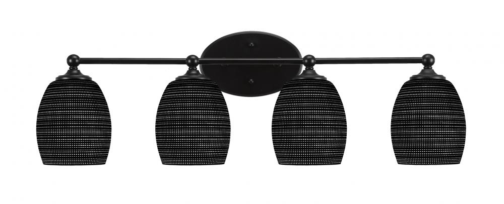 Capri 4 Light Bath Bar Shown In Matte Black Finish With 5 Black Matrix Glass