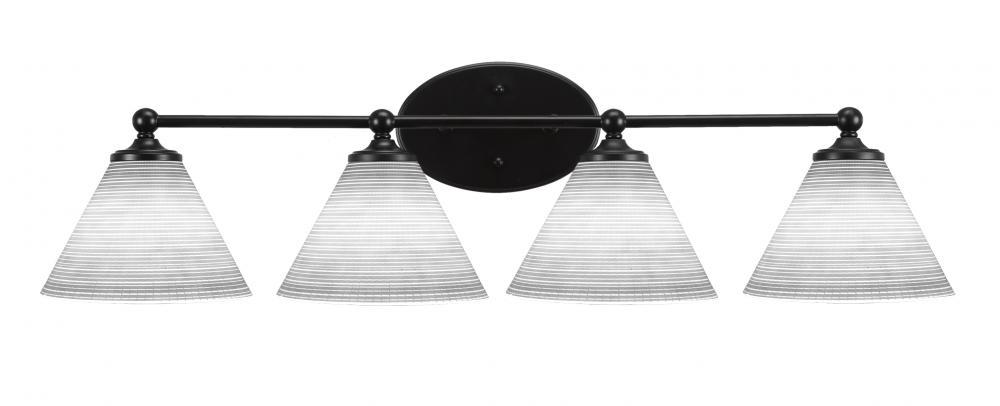 Capri 4 Light Bath Bar Shown In Matte Black Finish With 7 White Matrix Glass