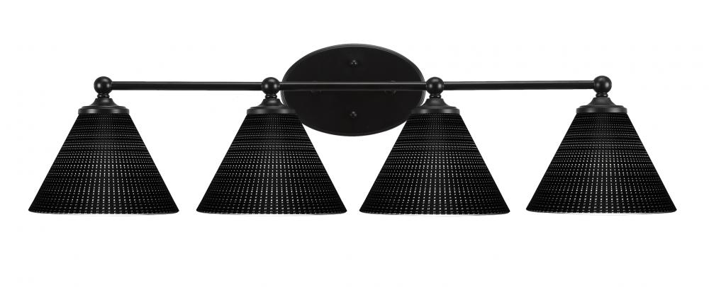 Capri 4 Light Bath Bar Shown In Matte Black Finish With 7 Black Matrix Glass