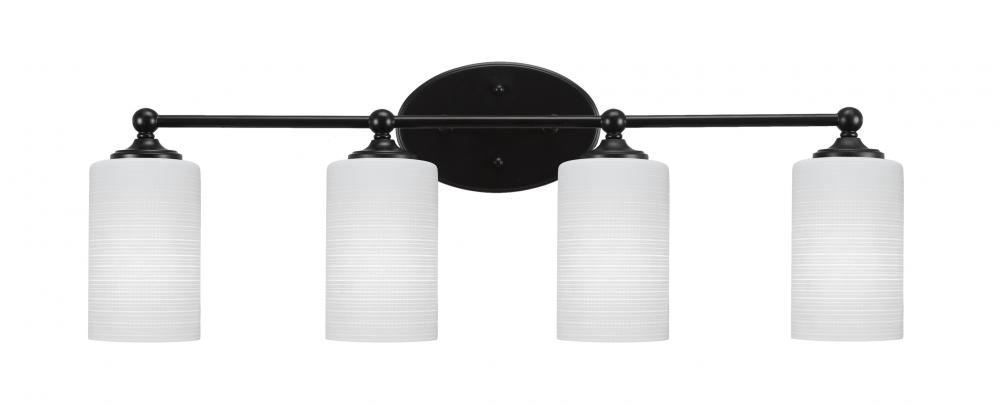 Capri 4 Light Bath Bar Shown In Matte Black Finish With 4 White Matrix Glass