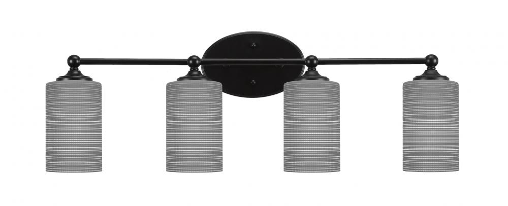 Capri 4 Light Bath Bar Shown In Matte Black Finish With 4 Gray Matrix Glass