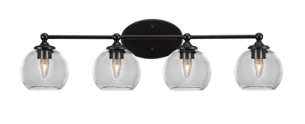 Capri 4 Light Bath Bar Shown In Matte Black Finish With 5.75 Clear Bubble Glass