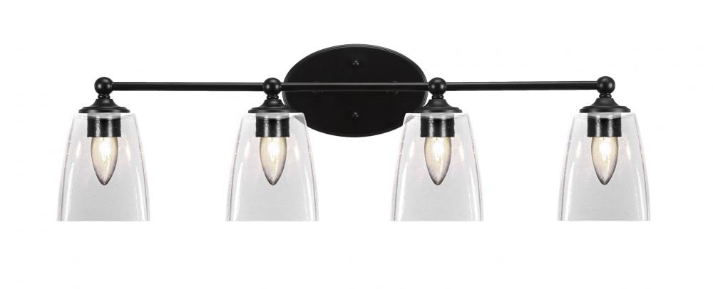 Capri 4 Light Bath Bar Shown In Matte Black Finish With 4.5 Clear Bubble Glass
