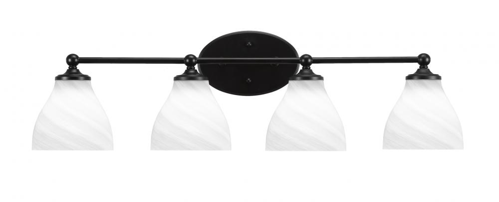 Capri 4 Light Bath Bar Shown In Matte Black Finish With 6.25 White Marble Glass