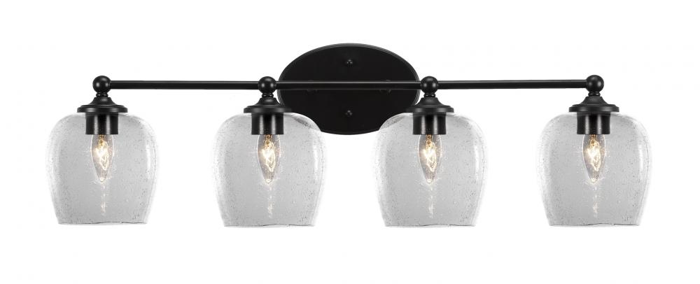Toltec Lighting 5914-MB-4810 Capri 4 Light Bath Bar Shown In Matte Black Finish With 6 Clear Bubble Glass