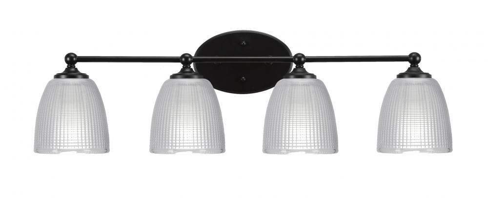 Capri 4 Light Bath Bar Shown In Matte Black Finish With 5 Clear Ribbed Glass