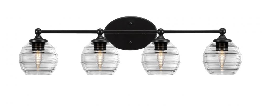 Toltec Lighting 5914-MB-5110 Capri 4 Light Bath Bar Shown In Matte Black Finish With 6 Clear Ribbed Glass