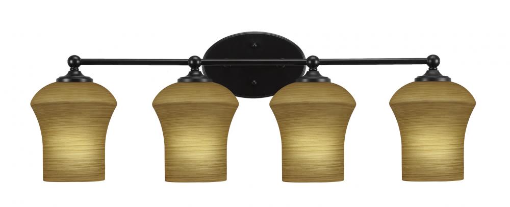 Toltec Lighting 5914-MB-680 Capri 4 Light Bath Bar Shown In Matte Black Finish With 5.5 Zilo Cayenne Linen Glass