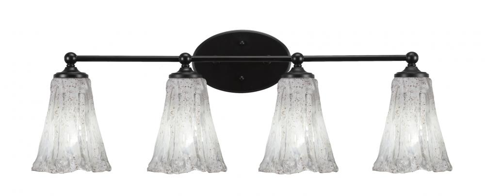 Capri 4 Light Bath Bar Shown In Matte Black Finish With 5.5 Fluted Italian Ice Glass
