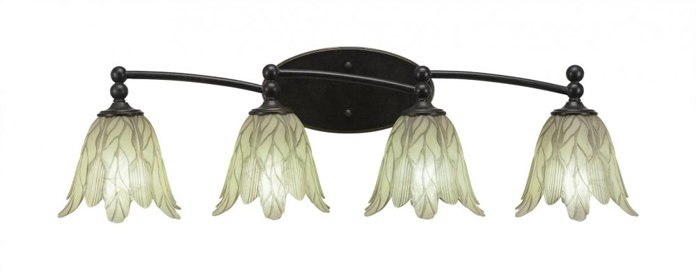 Toltec Lighting 594-DG-1025 Capri 4 Light Bath Bar Shown In Dark Granite Finish With 7 Vanilla Leaf Glass