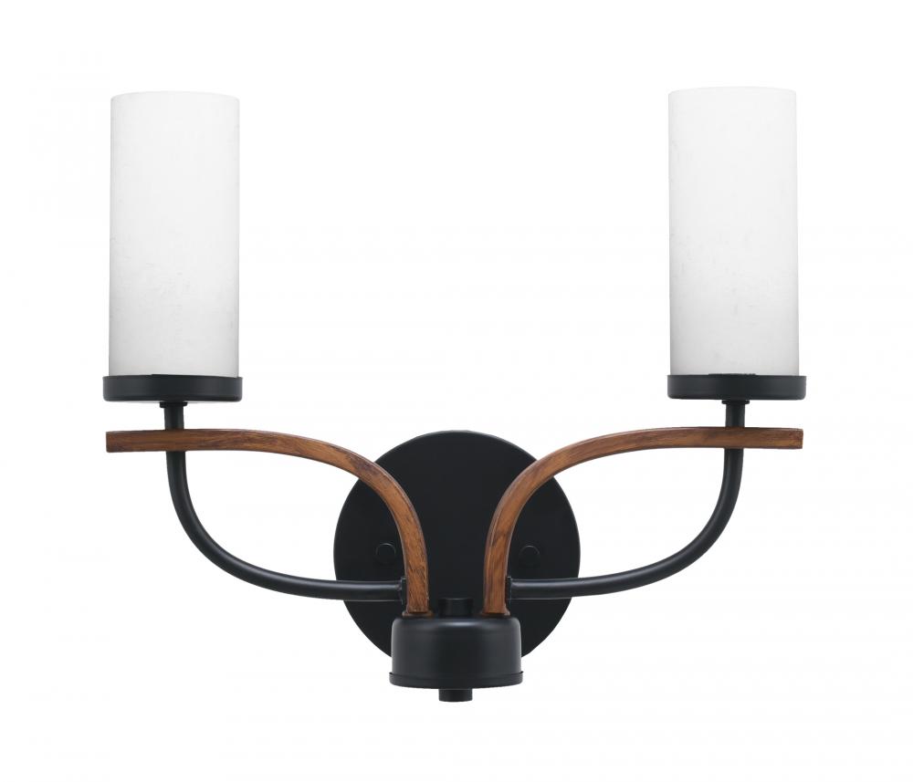 Monterey 2 Light Bath Bar In Matte Black & Painted Wood-look Metal Finish With 2.5 White Muslin Glass