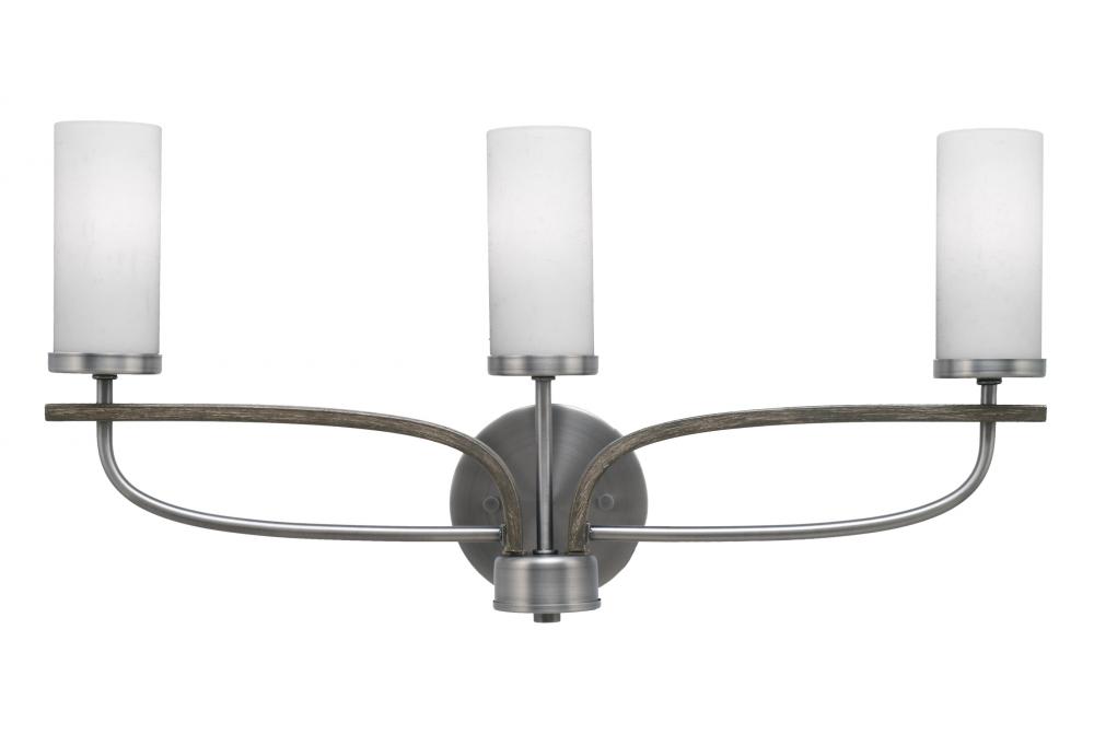 Toltec Lighting 2913-GPDW-801 Monterey 3 Light Bath Bar Shown In Graphite & Painted Distressed Wood-look Metal Finish With 2.5 White Muslin Glass