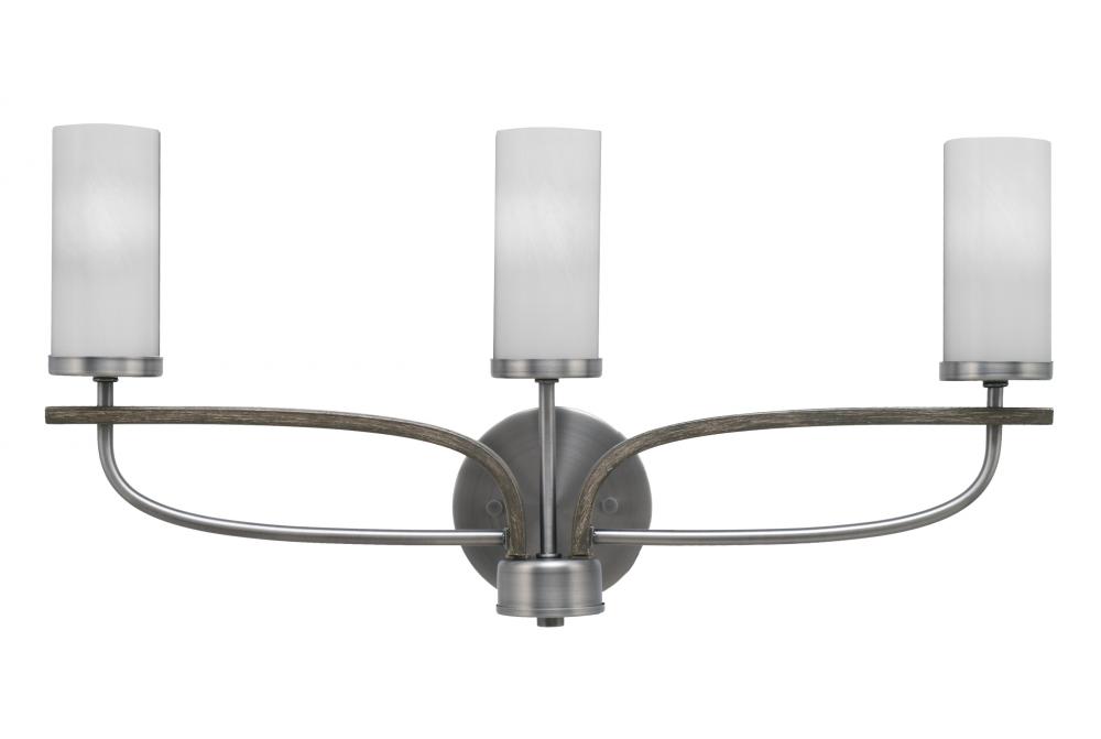 Monterey 3 Light Bath Bar In Graphite & Painted Distressed Wood-look Metal Finish With 2.5 White Marble Glass