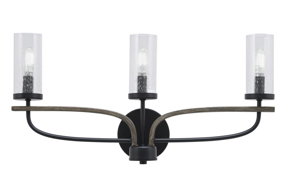 Monterey 3 Light Bath Bar In Matte Black & Painted Distressed Wood-look Metal Finish With 2.5 Clear Bubble Glass