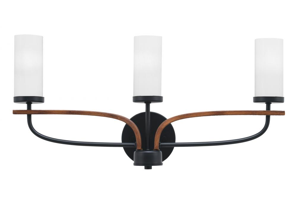 Monterey 3 Light Bath Bar In Matte Black & Painted Wood-look Metal Finish With 2.5 White Marble Glass