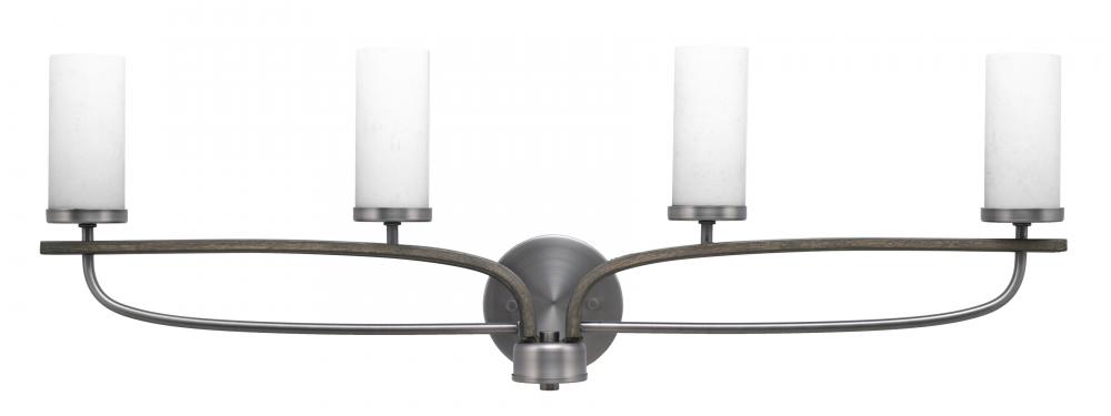 Monterey 4 Light Bath Bar In Graphite & Painted Distressed Wood-look Metal Finish With 2.5 White Muslin Glass