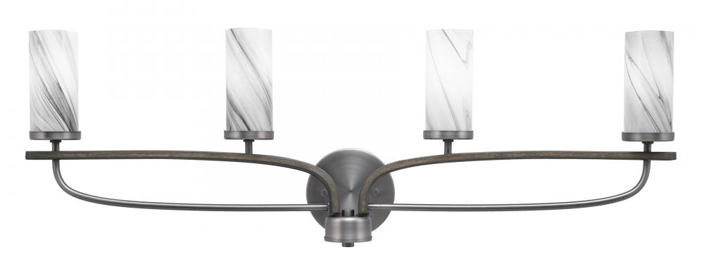 Monterey 4 Light Bath Bar In Graphite & Painted Distressed Wood-look Metal Finish With 2.5 Onyx Swirl Glass