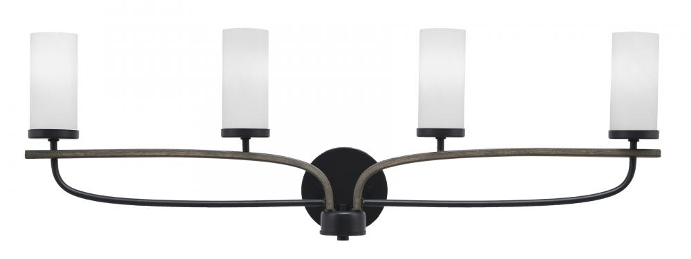 Monterey 4 Light Bath Bar In Matte Black & Painted Distressed Wood-look Metal Finish With 2.5 White Marble Glass
