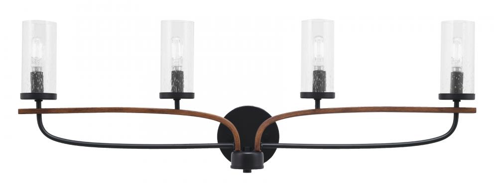 Monterey 4 Light Bath Bar In Matte Black & Painted Wood-look Metal Finish With 2.5 Clear Bubble Glass