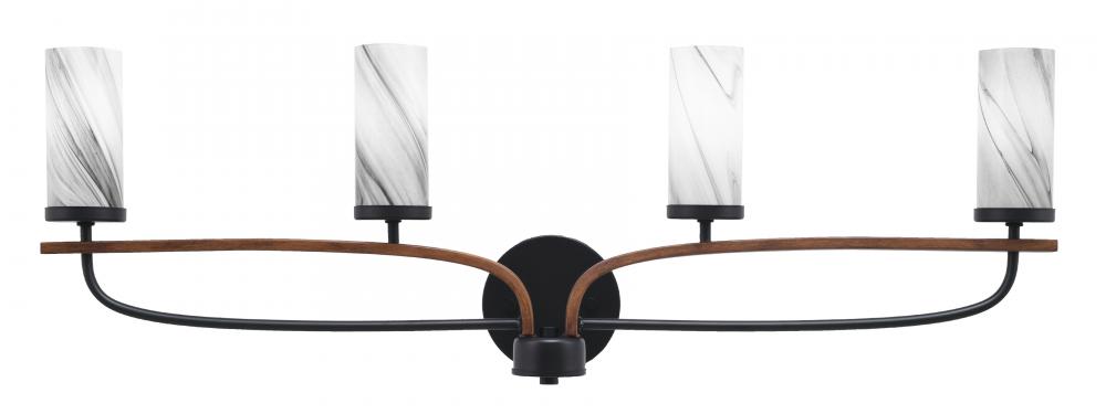 Monterey 4 Light Bath Bar In Matte Black & Painted Wood-look Metal Finish With 2.5 Onyx Swirl Glass