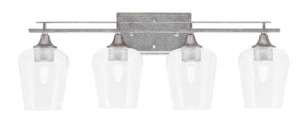 Toltec Lighting 134-AS-210 Uptowne 4 Light Bath Bar, Aged Silver Finish, 5 Clear Bubble Glass