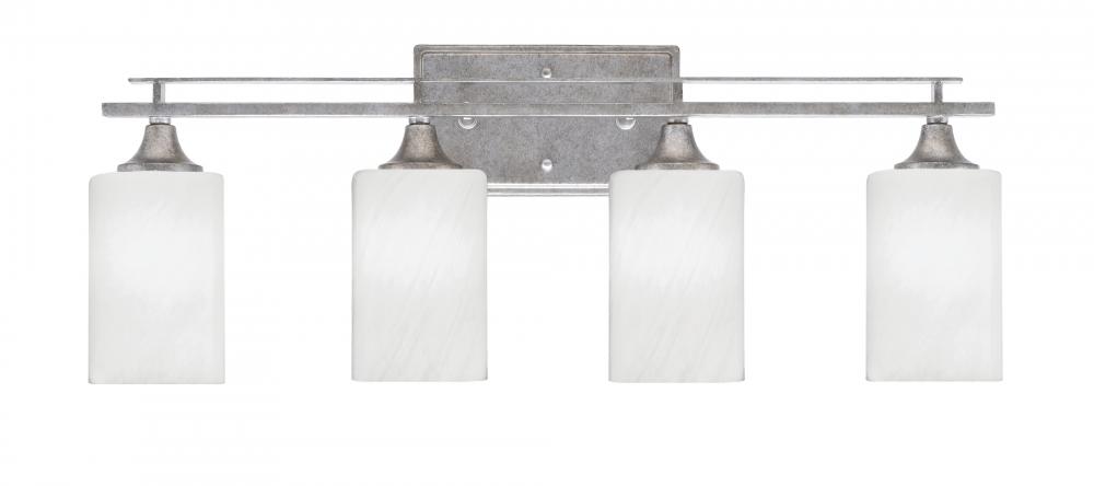 Toltec Lighting 134-AS-3001 Uptowne 4 Light Bath Bar, Aged Silver Finish, 4 White Marble Glass