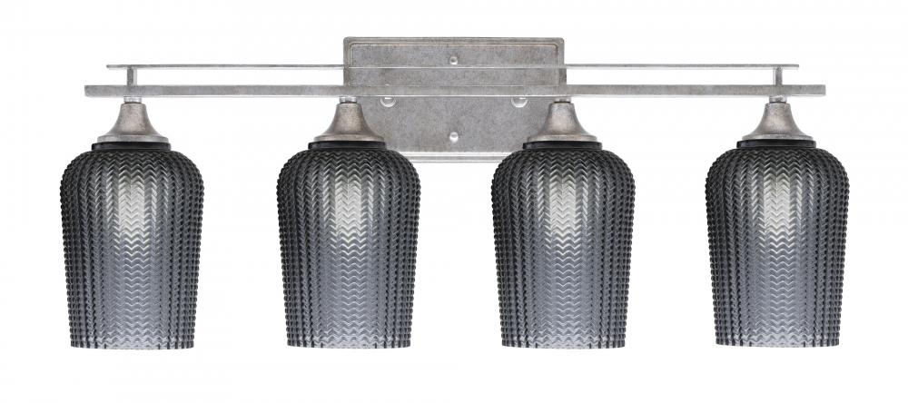 Toltec Lighting 134-AS-4252 Uptowne 4 Light Bath Bar, Aged Silver Finish, 5 Smoke Textured Glass