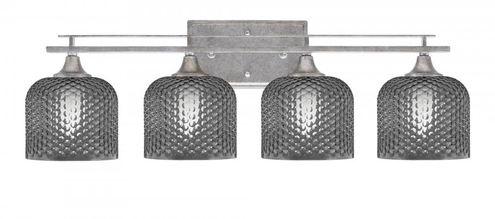 Toltec Lighting 134-AS-4612 Uptowne 4 Light Bath Bar, Aged Silver Finish, 6 Smoke Textured Glass