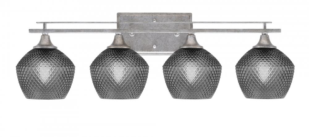 Toltec Lighting 134-AS-4622 Uptowne 4 Light Bath Bar, Aged Silver Finish, 6 Smoke Textured Glass