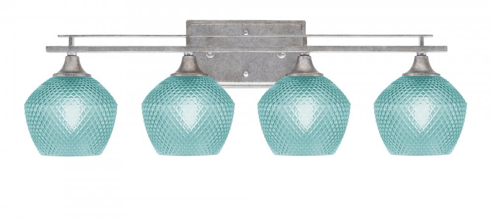 Toltec Lighting 134-AS-4625 Uptowne 4 Light Bath Bar, Aged Silver Finish, 6 Turquoise Textured Glass