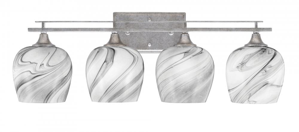 Toltec Lighting 134-AS-4819 Uptowne 4 Light Bath Bar, Aged Silver Finish, 6 Onyx Swirl Glass