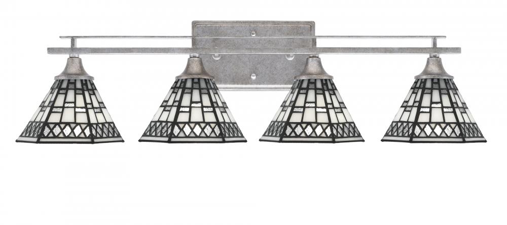 Toltec Lighting 134-AS-9105 Uptowne 4 Light Bath Bar, Aged Silver Finish, 7 Pewter Art Glass