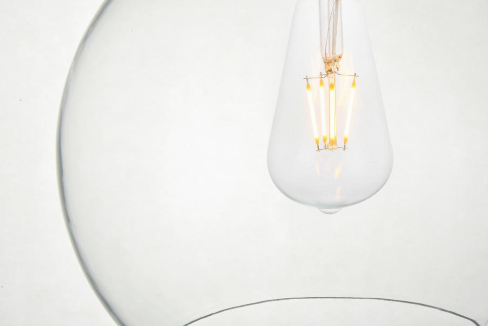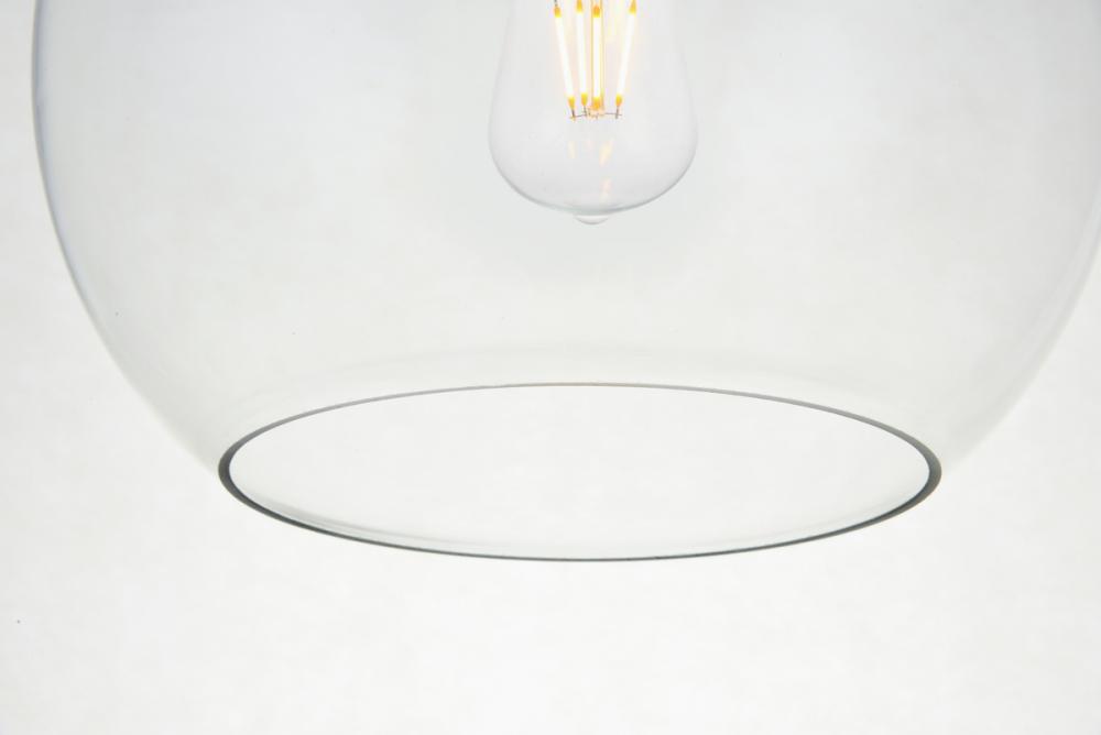 Feature 2: spherical clear glass shade with open center for easy bulb replacement