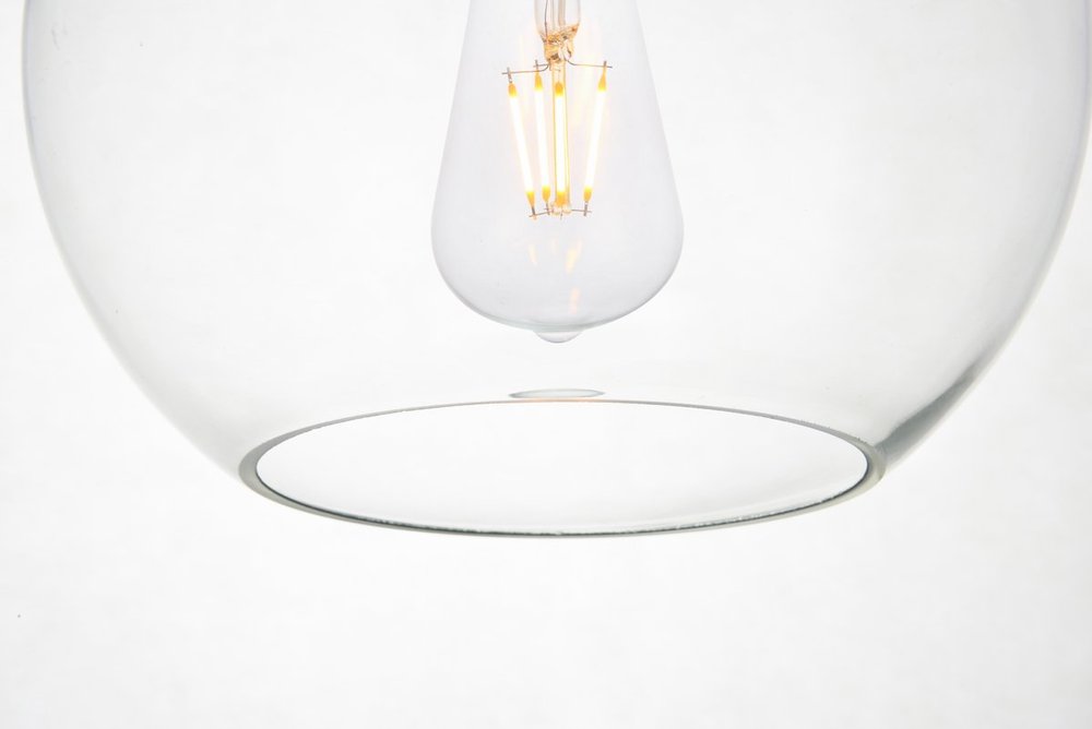 Spherical clear glass shade with open center for easy bulb replacement