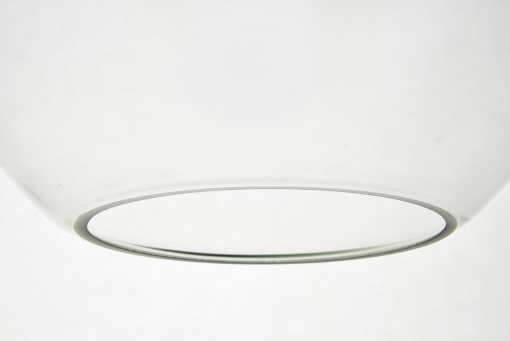 Feature 2: spherical clear glass shade with open center for easy bulb replacement