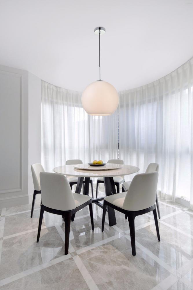 Feature 2: spherical frosted white glass shade with open center for easy bulb replacement
