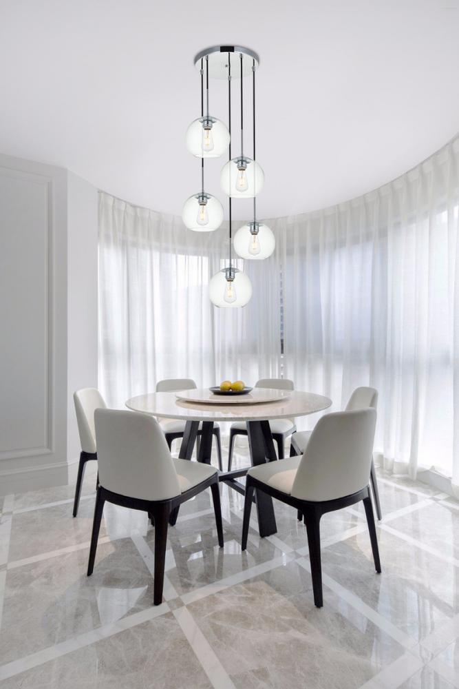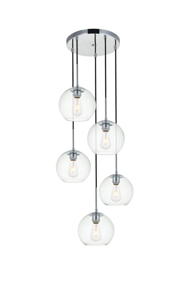 Elegant LD2226C - Baxter 5 Lights Chrome Pendant With Clear Glass