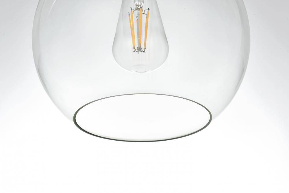 Features a clear glass shade, offering bright, unobstructed light and a clean, modern look.