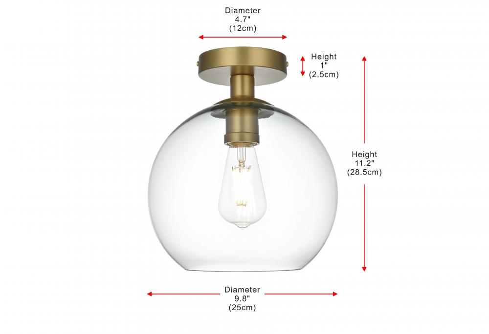 Baxter flush mount ceiling lamps deliver cosmopolitan sophistication through a refined yet practical design, perfect for enhancing any space—whether it's an entryway, hallway, bathroom, kitchen, or closet. The smooth iron frame features a disk-shaped canopy finished in sleek satin gold, paired with a clear spherical glass shade that remains open at the center for effortless bulb replacement. The filament-style bulb (not included) complements the timeless charm. Bringing big-city elegance into your home has never been simpler.