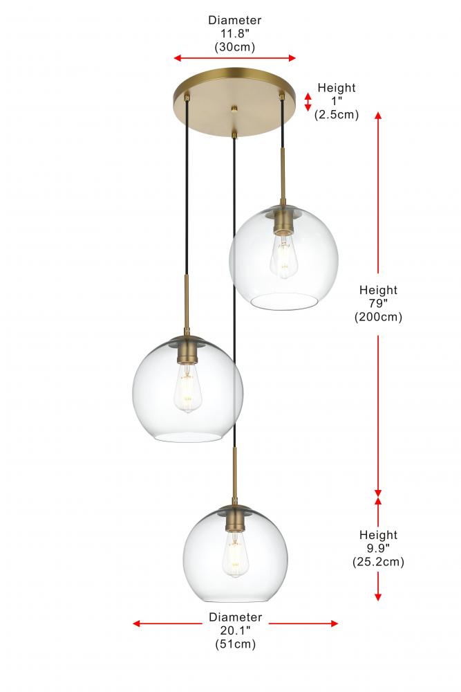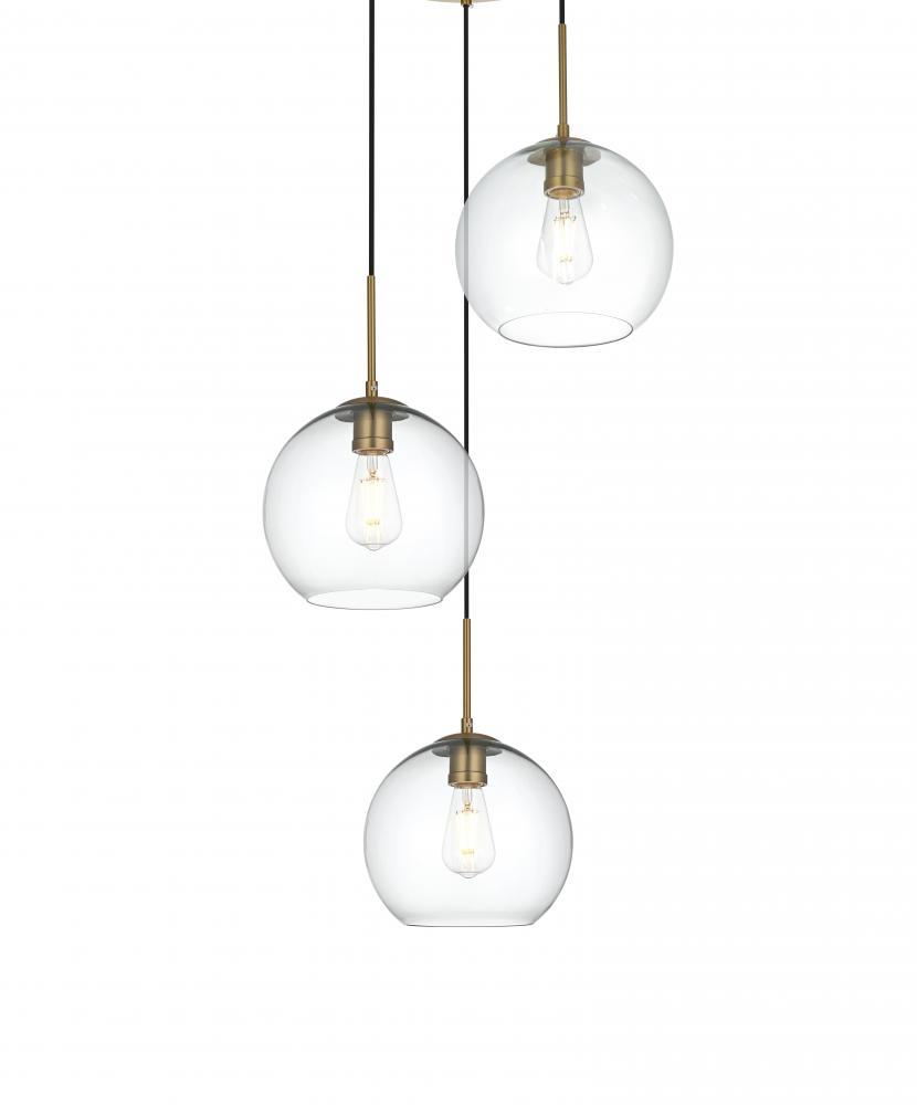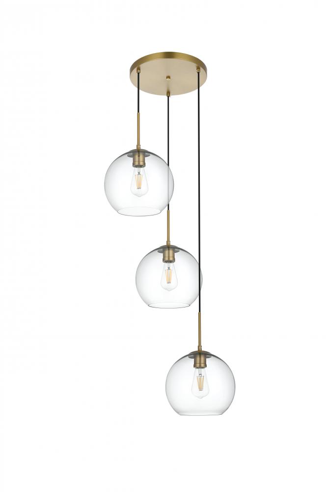 Elegant LD2214BR - Baxter 3 Lights Brass Pendant With Clear Glass