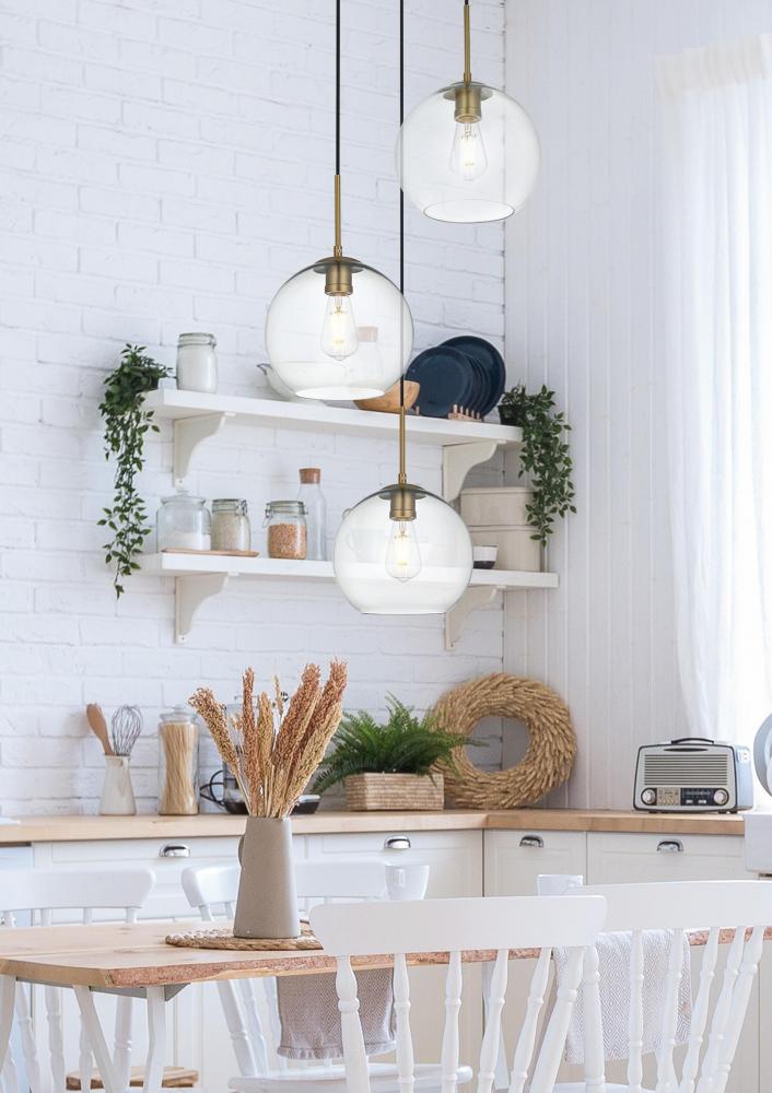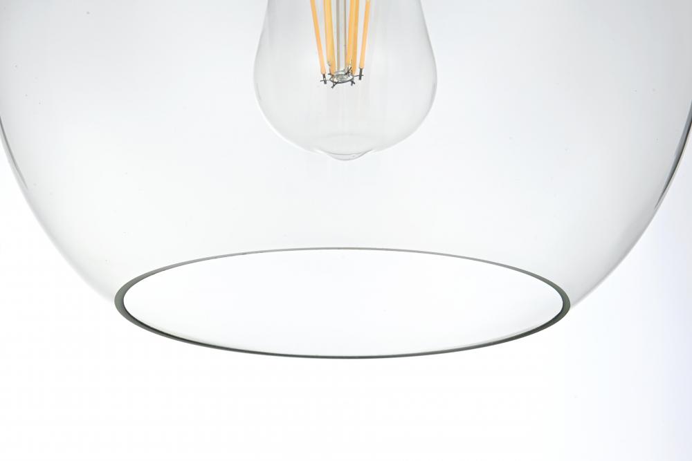 Features a clear glass shade, offering bright, unobstructed light and a clean, modern look.