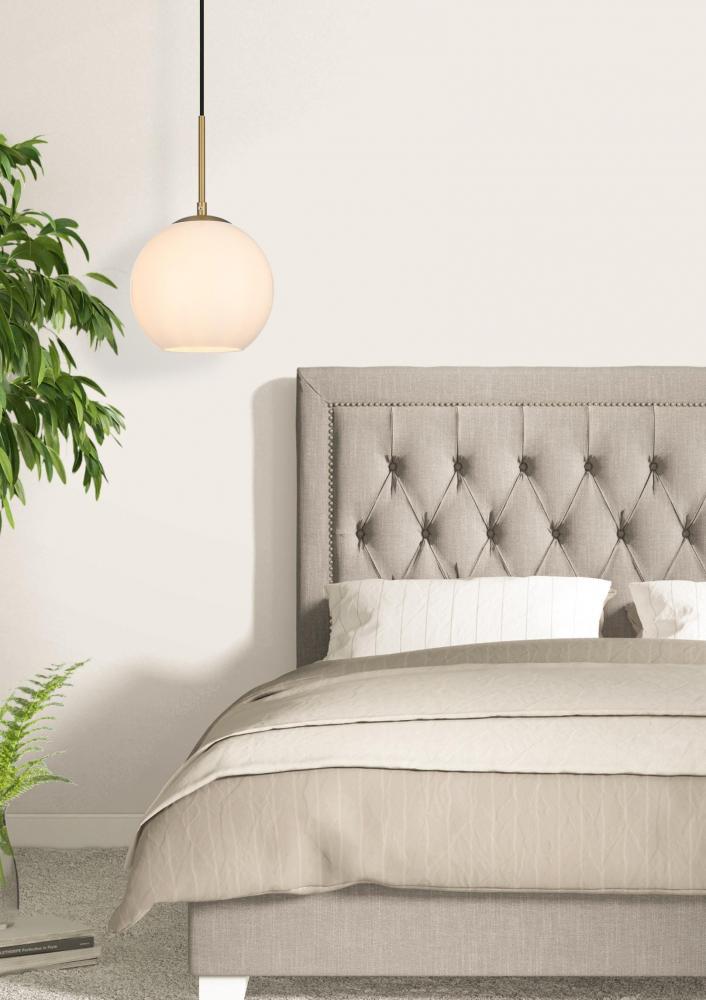 Features a frosted white glass shade, delivering a soft, diffused light for a warm, inviting atmosphere.