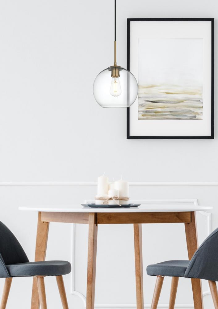 The Baxter hanging pendant light combines refined style with a practical design, adding cosmopolitan sophistication to any space—be it an entryway, hallway, bathroom, kitchen, or closet. The sleek iron frame, complete with a disk-shaped canopy, elegantly supports a clear spherical glass shade that stays open at the center, making bulb replacement effortless. Designed for those who love the look of big-city elegance, the Baxter pendant makes sophisticated living easy.