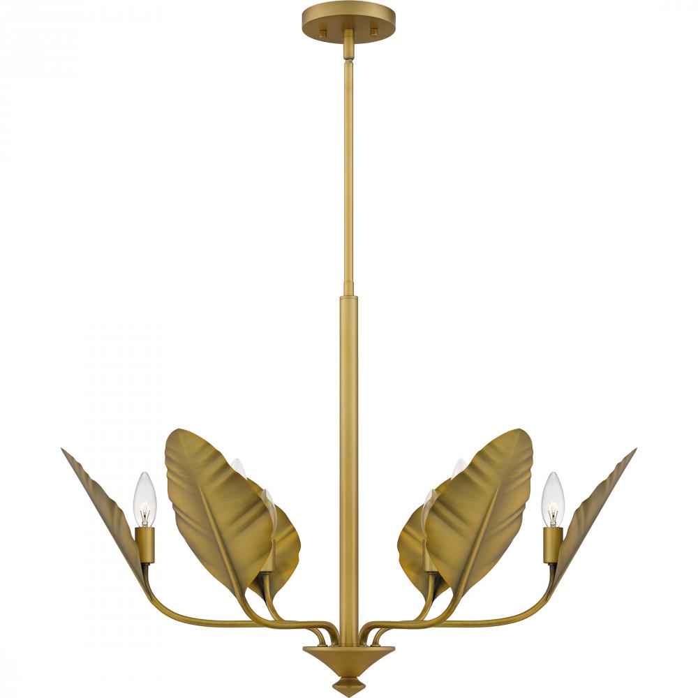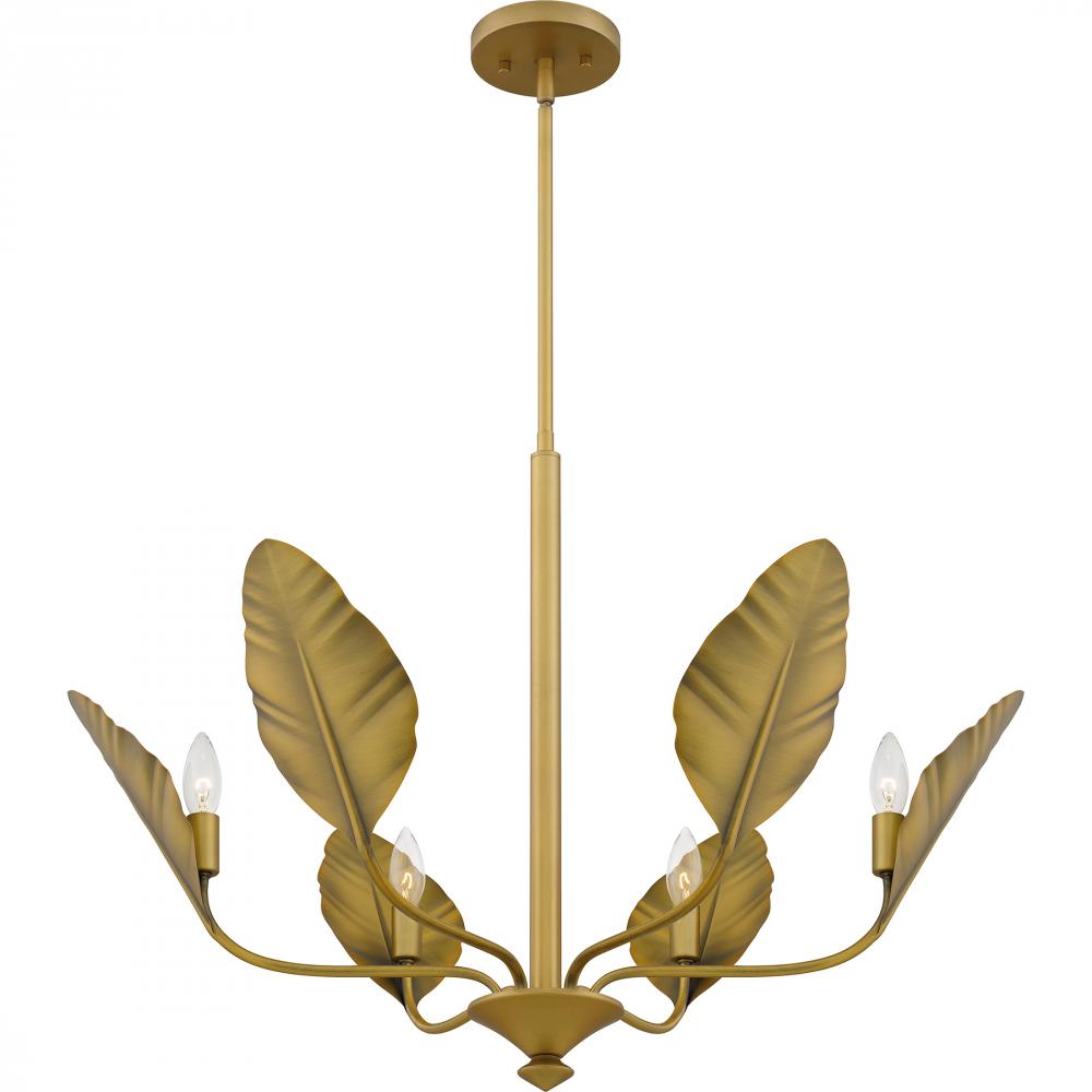 Nature and luxury come together flawlessly in the Bayley collection. Large leaf accents flourish in an aged brass finish, giving new life to the flowing curved lines and slender candle sleeves. Bayley is available as a semi-flush mount or chandelier, makin