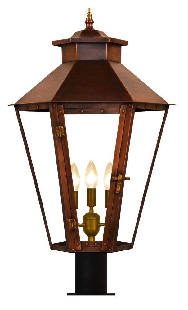 Size 63 Electric Copper Lantern, 3 candelabra base sockets, with Post Fitter, Post Fitter Adaptor