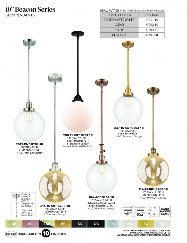 The Edison collection is comprised of heavy cast components that give the fixture a sturdy transitional look. We offer the fixture in 9 finishes with a Bare Bulb look or with over 100 possible metal and glass shade options that can change the style to fit